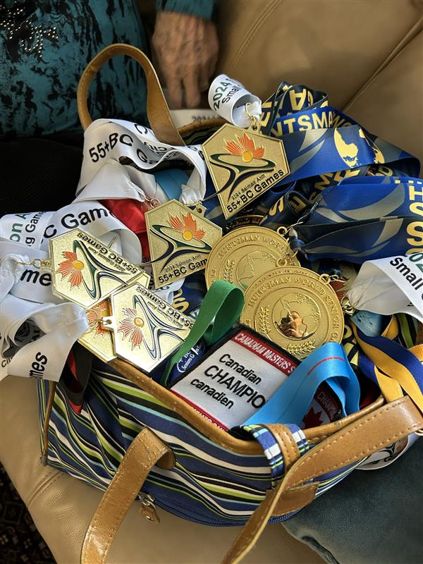 She thinks she has around 50 medals, but in truth, her bag holds far more. Just this past October at the World Senior Games in Utah, where over 11,000 people attended, Betty set four new world records!