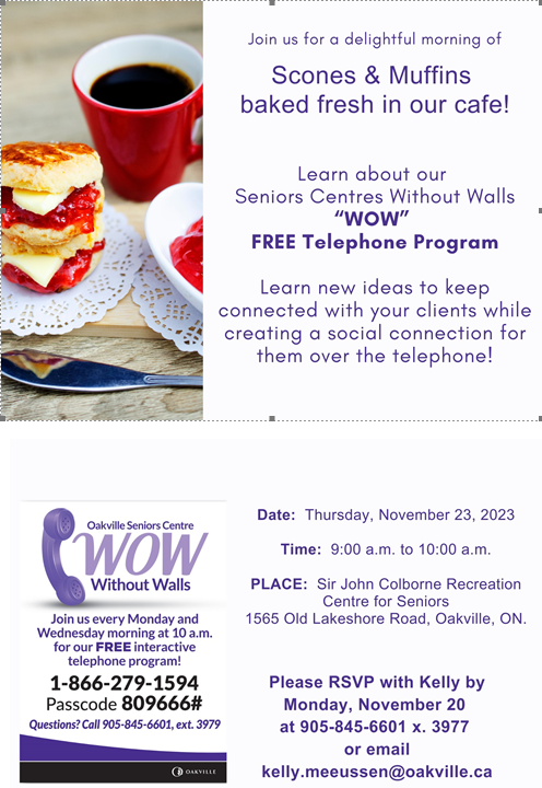 Join Palermo Retirement Community for a delightful morning of Scones & Muffins baked fresh inside Sir John Colborne Recreation Centre for Seniors!