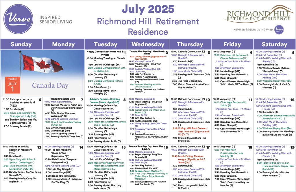 July 2025 – Monthly Activity Calendar
