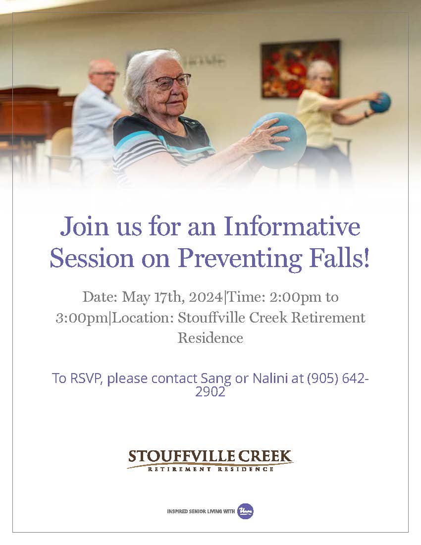 Date: May 17th, 2024|Time: 2:00pm to 3:00pm|Location: Stouffville Creek Retirement Residence