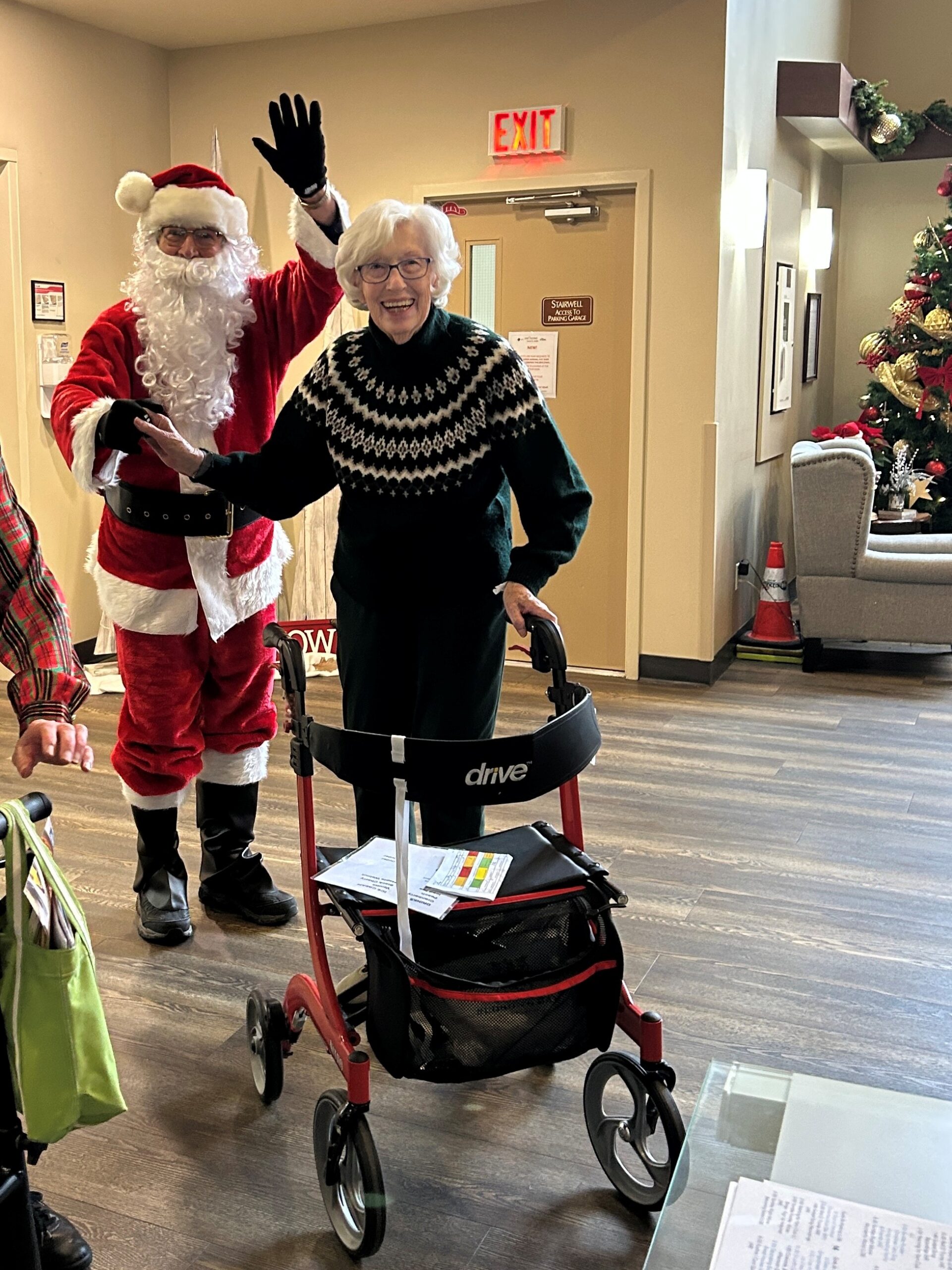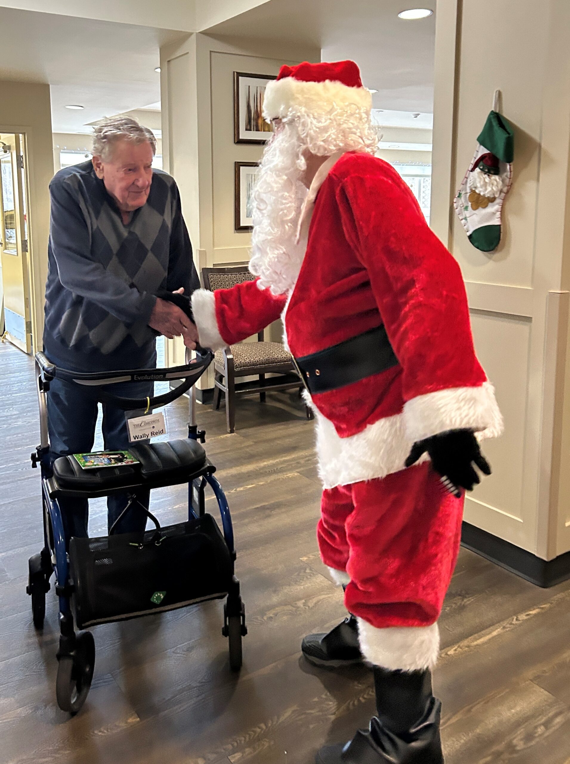 Santa dropped by the Concorde around noon last December 18th, Thursday,and cruised through the dining room and hallways wishing everyone a very Merry Christmas. We do not know where Santa came from except that he appeared at the front on his white sleigh.