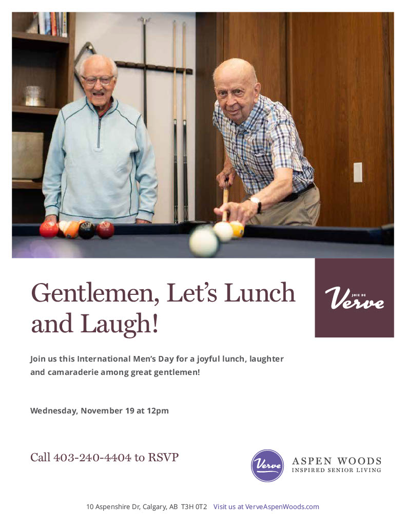 Join us this International Men’s Day on Wednesday, November 19 at 12: 00 pm for a joyful lunch, laughter and camaraderie among great gentlemen!