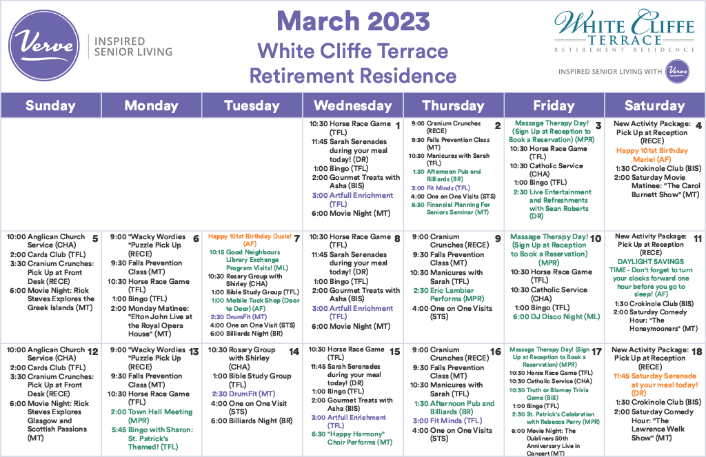 March – Activites Calendar