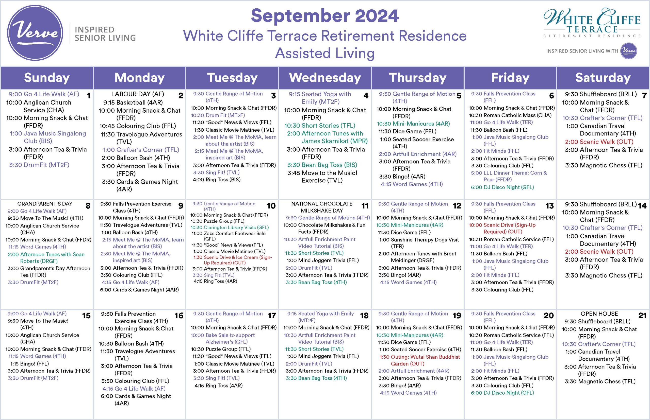 September 2024 – Monthly Assisted Living Activity Calendar!