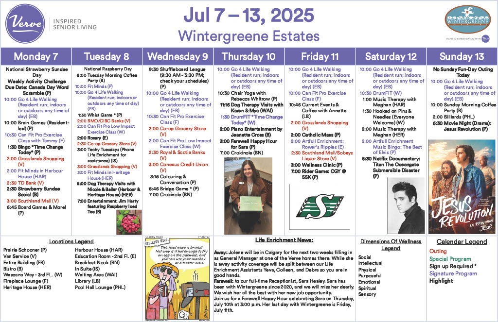 July 7th – 13th, 2025 – Weekly Activity Calendar!
