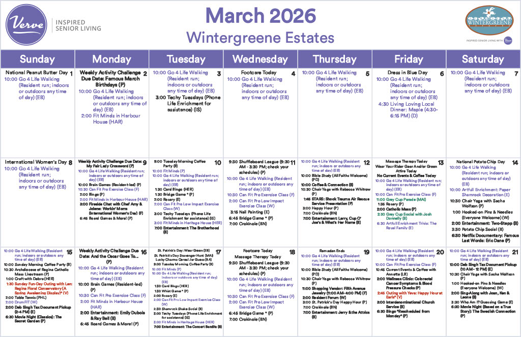 March 2026 – Independent and Assisted Living Monthly Calendar